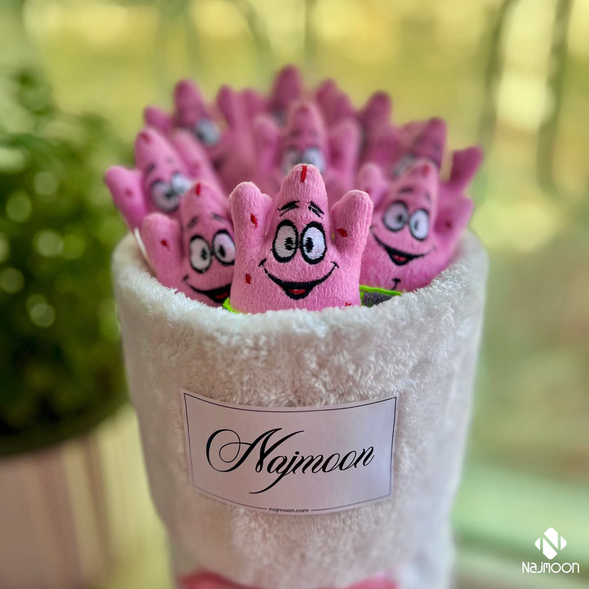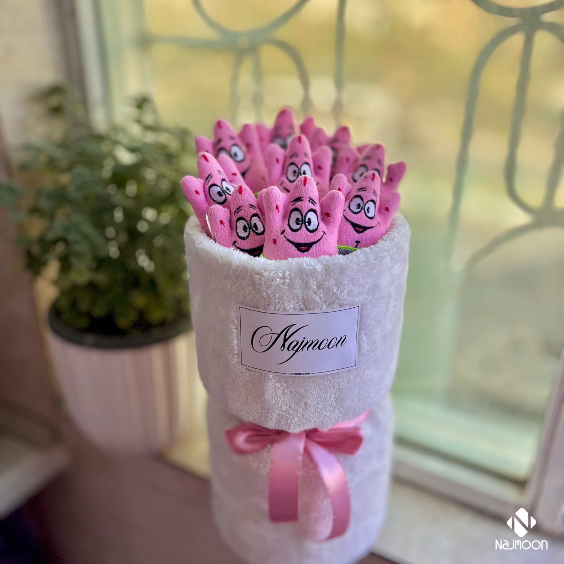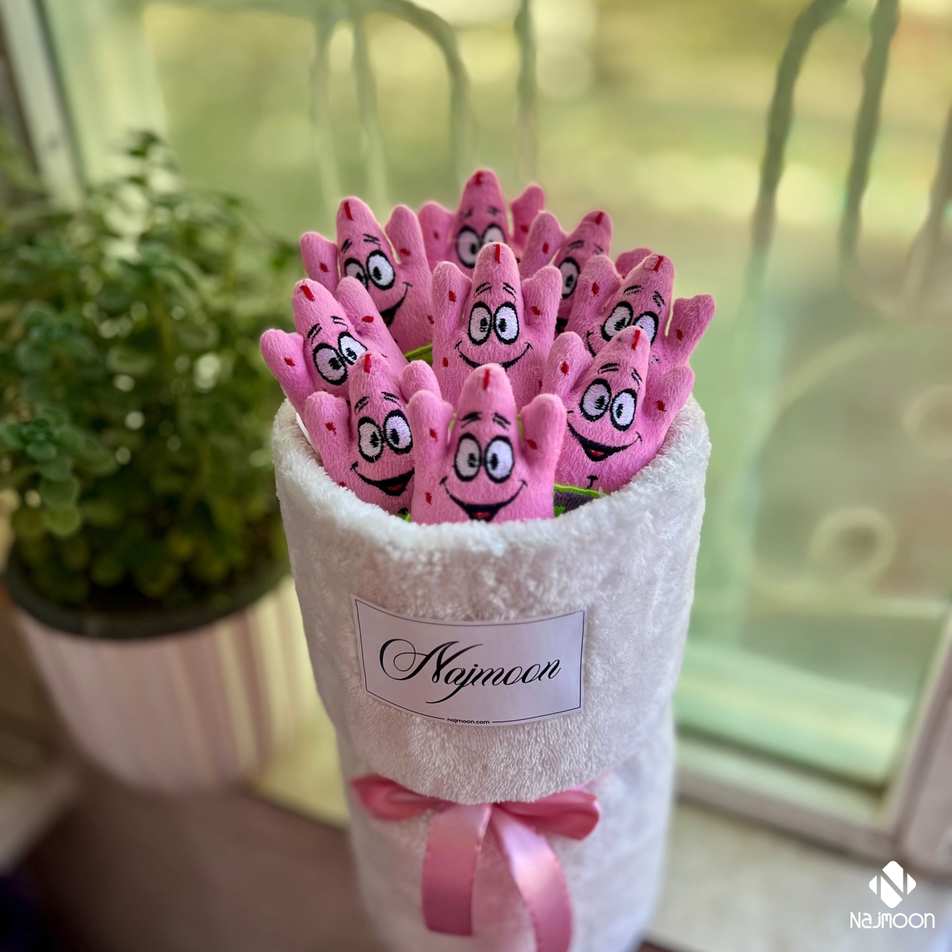 اگه میخوای یه دستگلی هدیه بدی که هم خاص باشه هم موندگار ، بوکت عروسکی پاتریک بهترین انتخابه