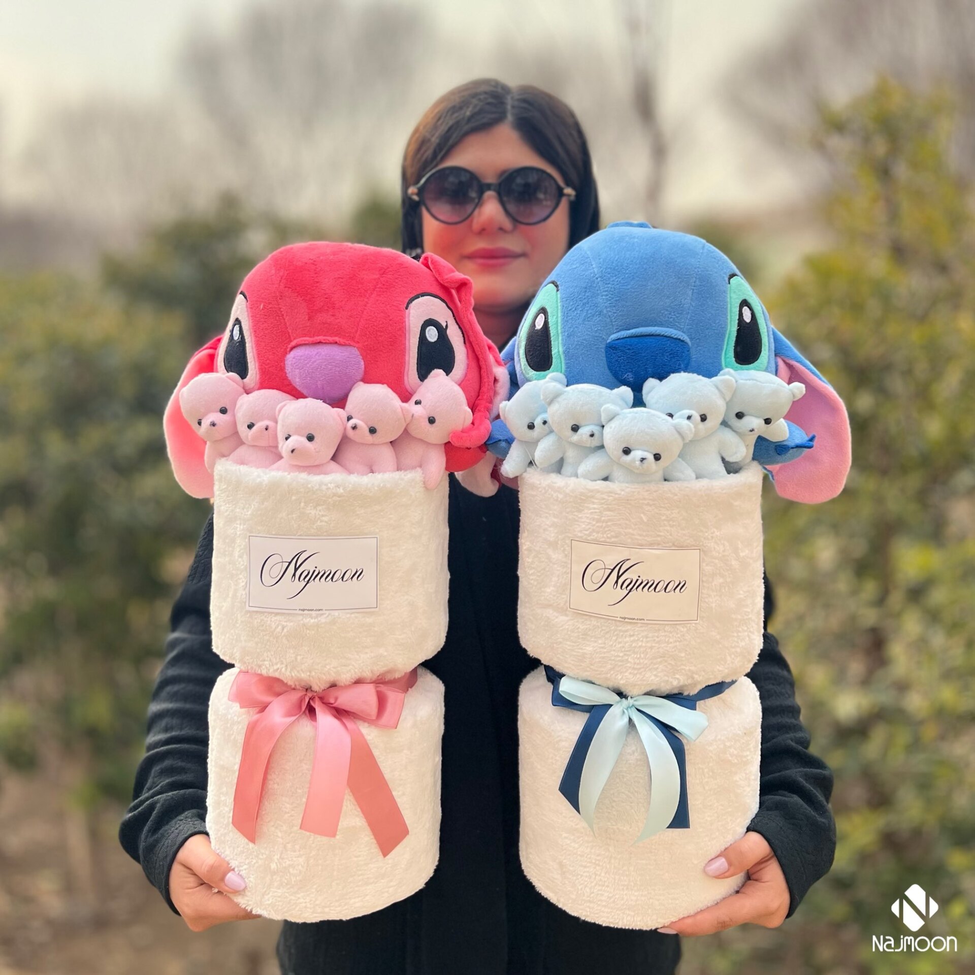 بوکت عروسکی اونم با ترکیب رنگ صورتی و عروسک استیچ یه دستگل خاصه که جایی ندیدیش