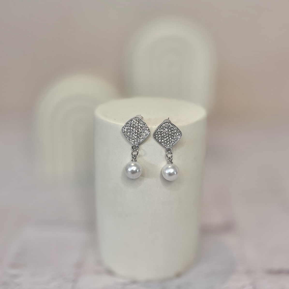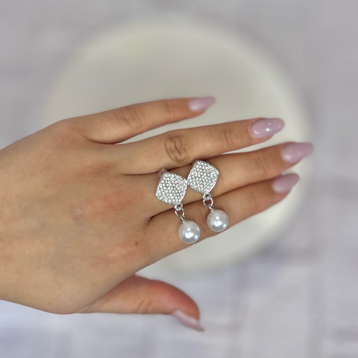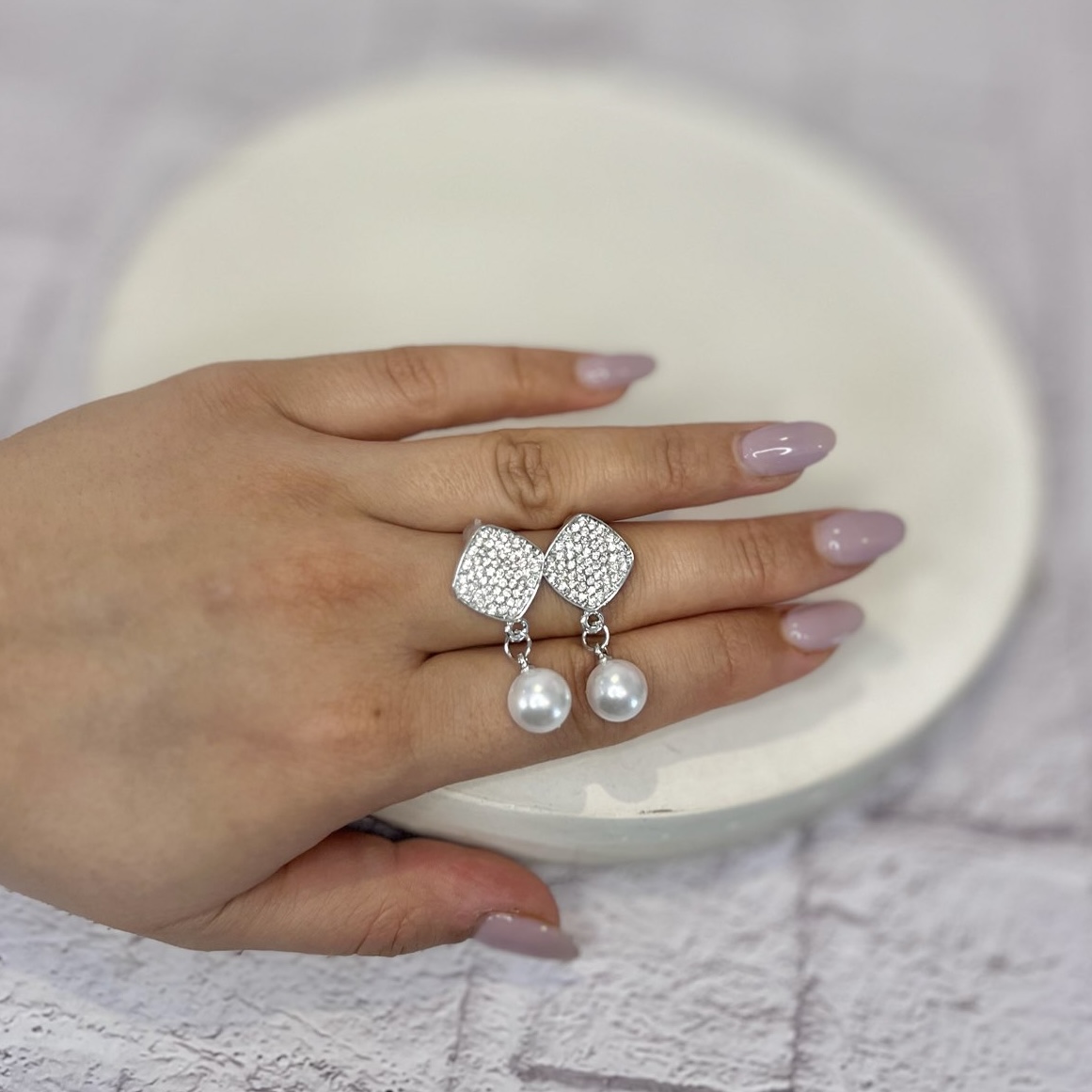 گوشواره ترند جواهری با مروارید باکیفیت با میخ نقره و ضدحساسیت