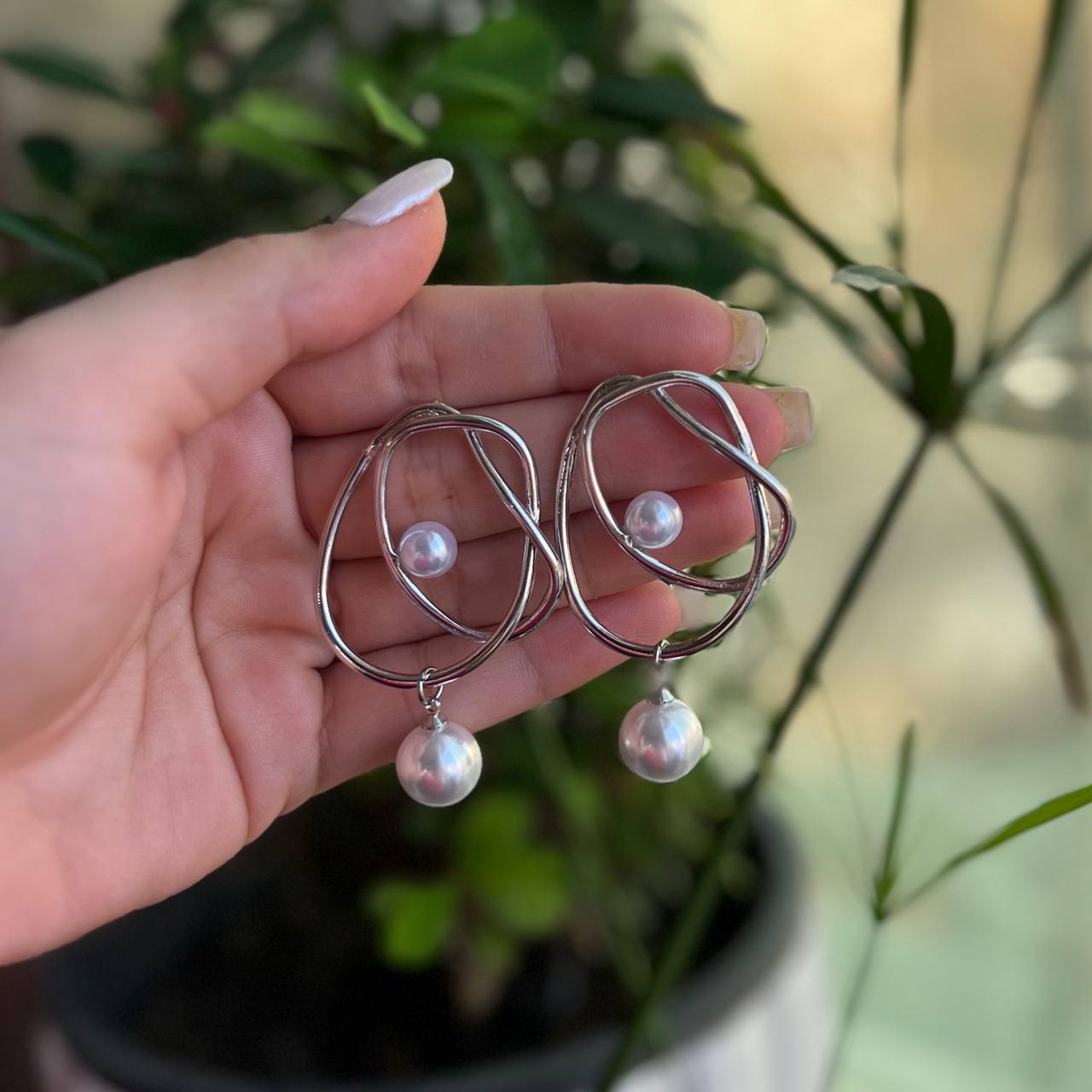 گوشواره با طراحی خاص مرواریدی ضد حساسیت با میخ نقره