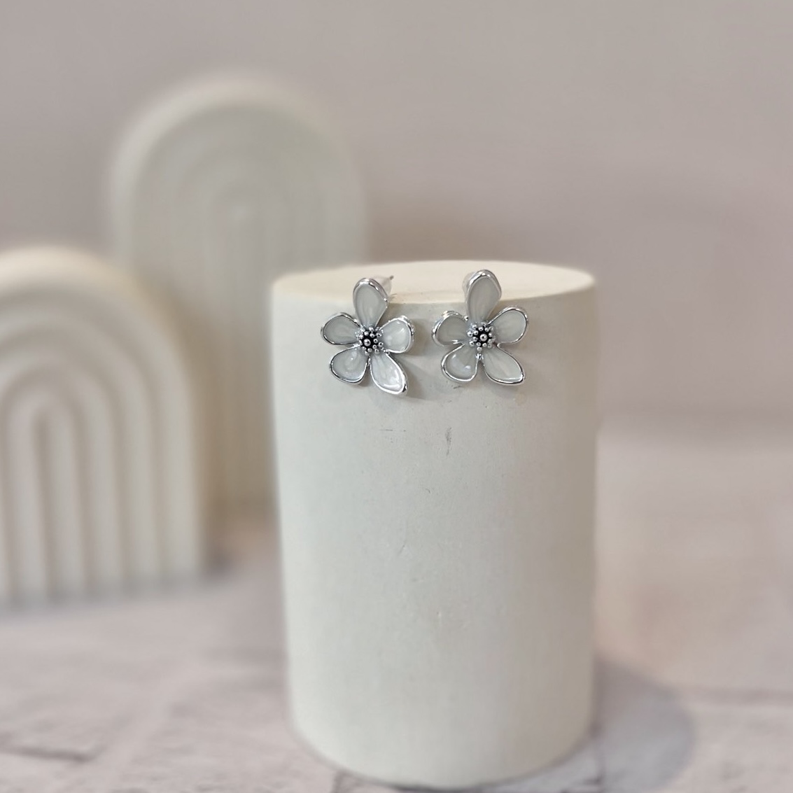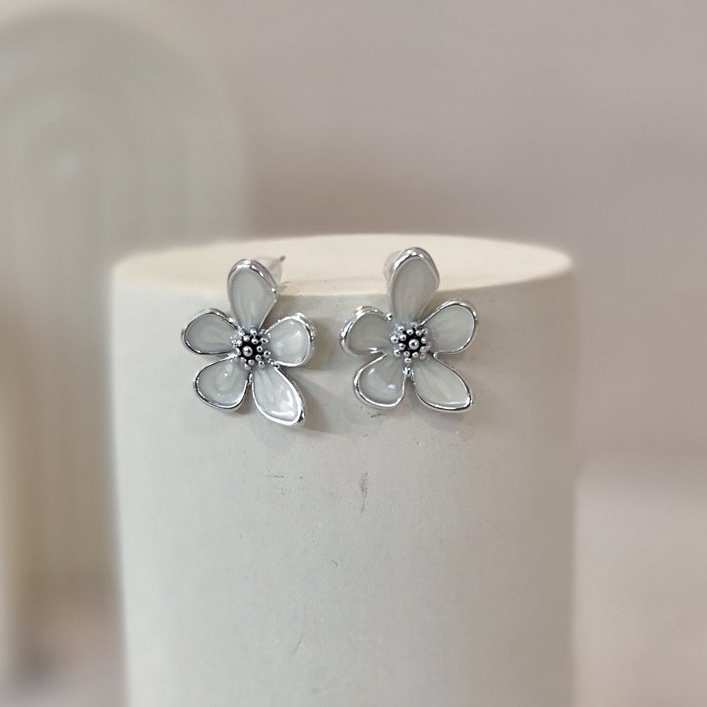 گوشواره گل میناکاری رنگ ثابت و ضد حساسیت با میخ نقره