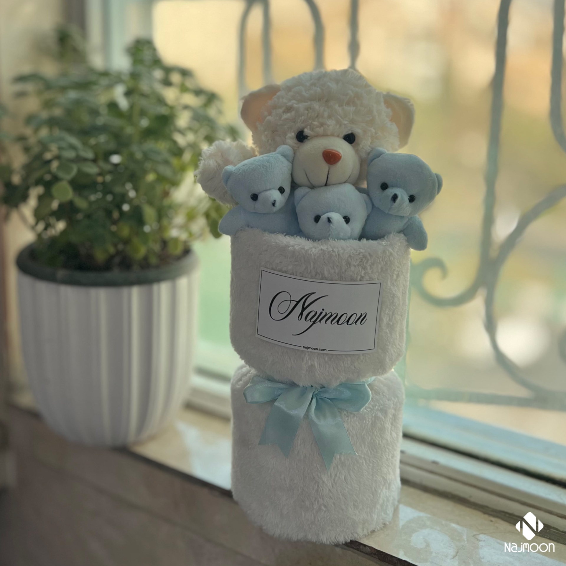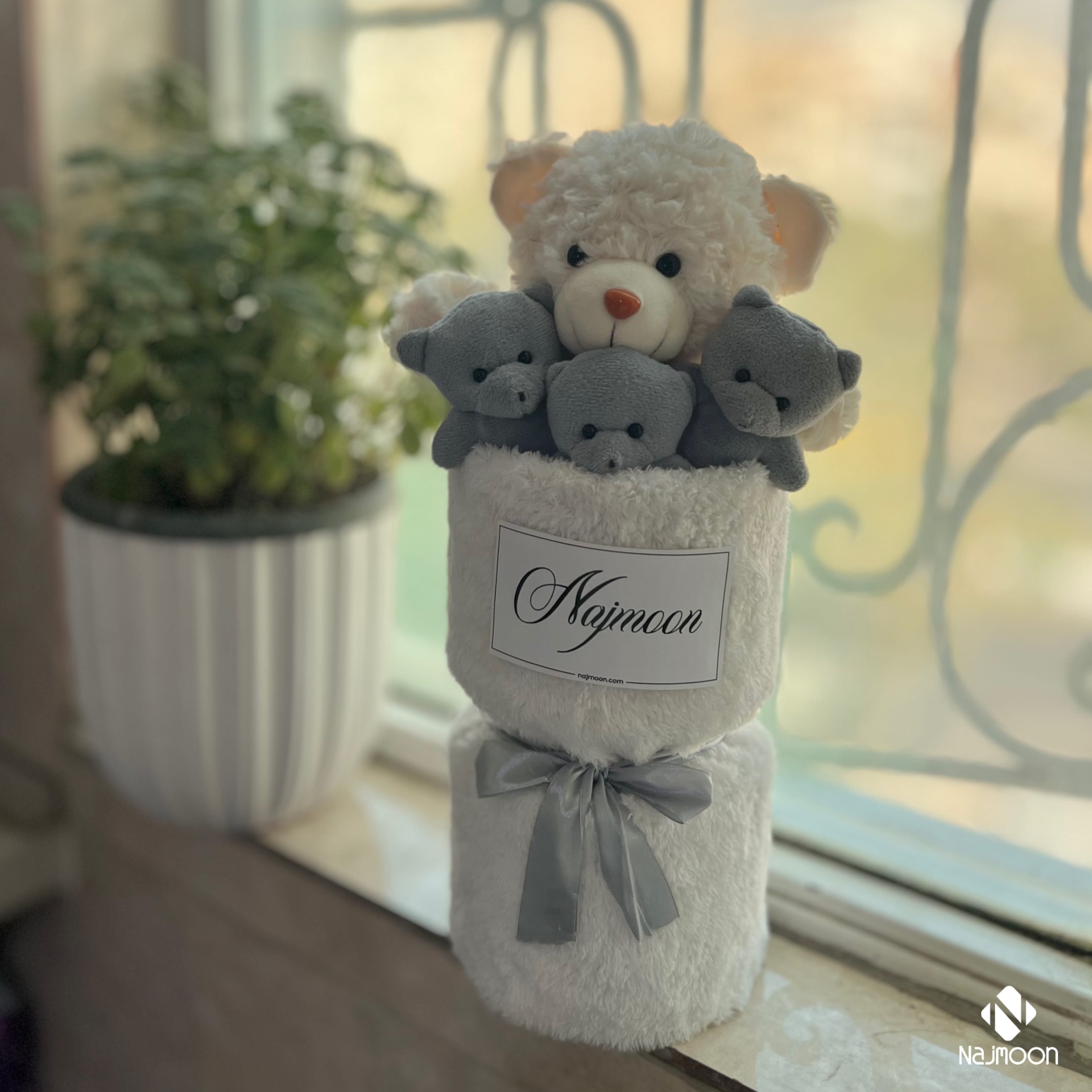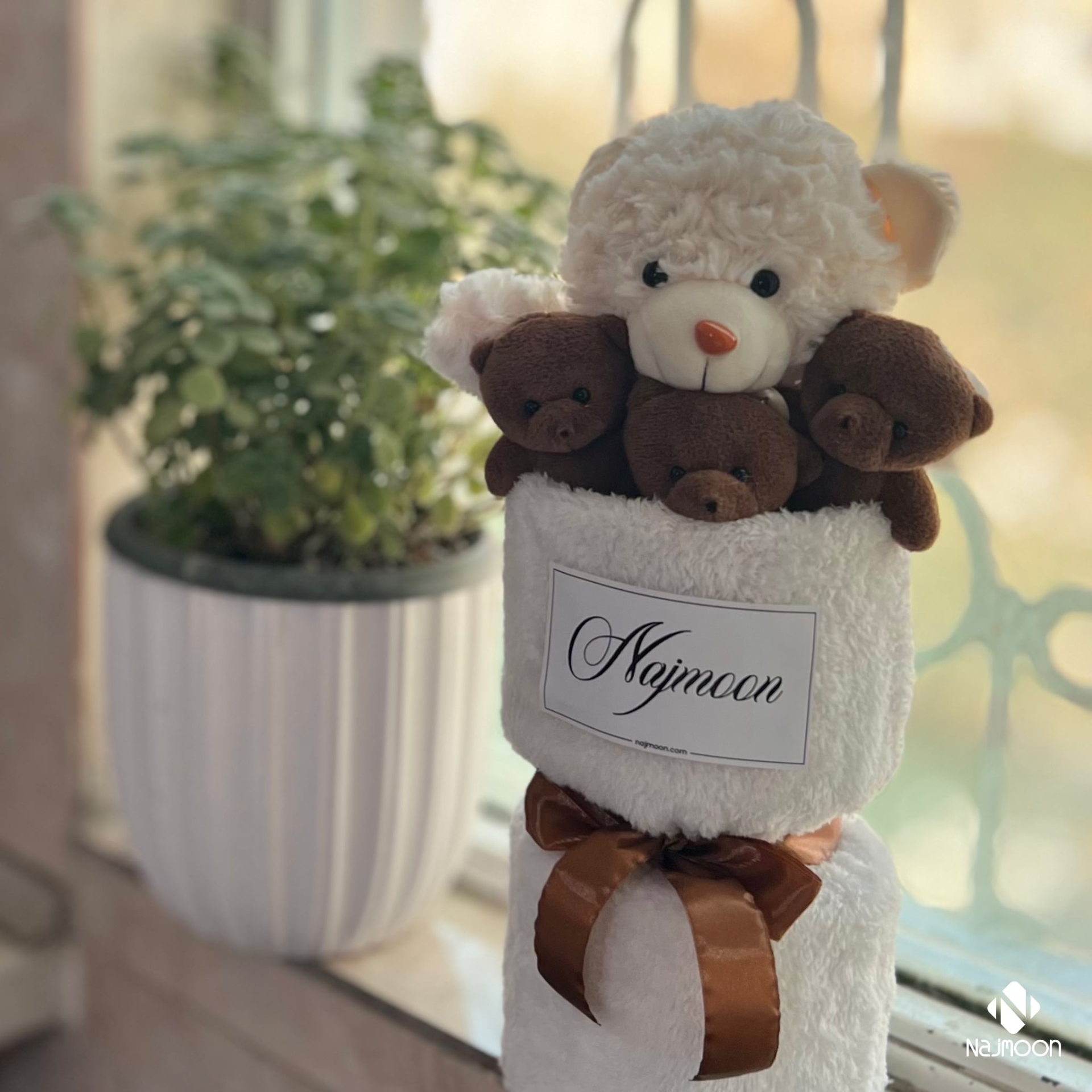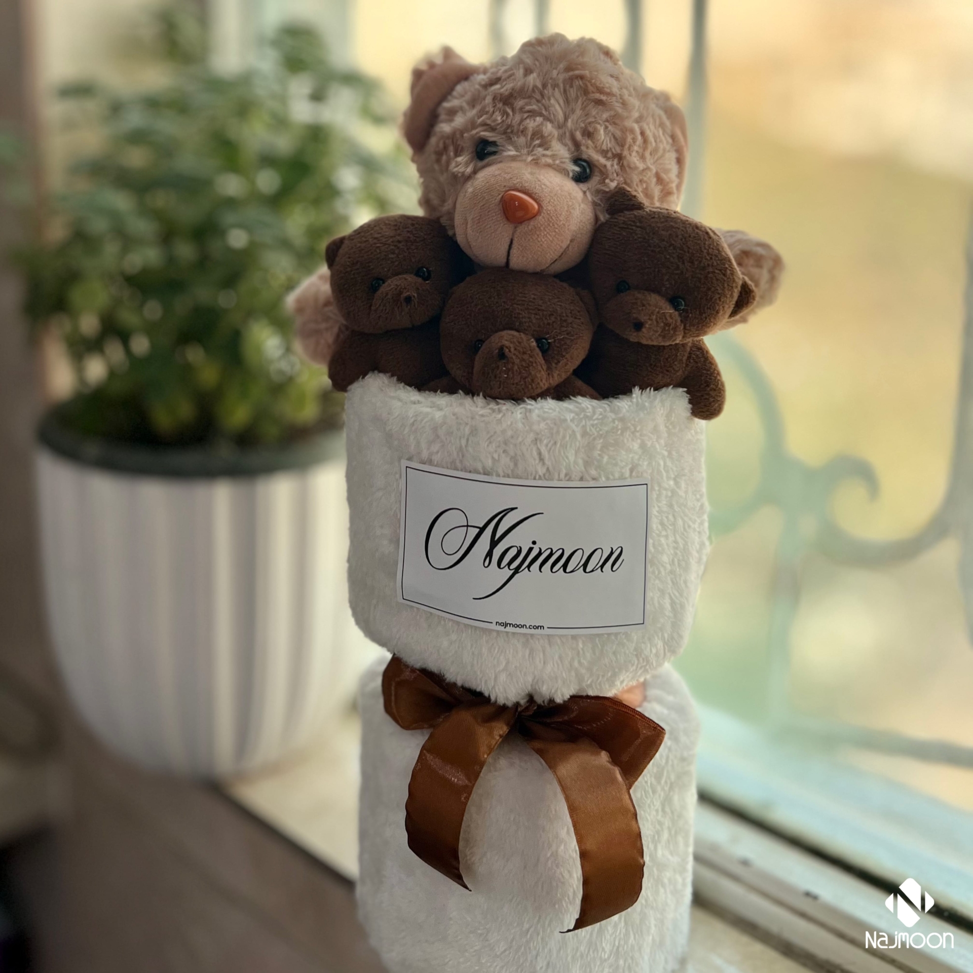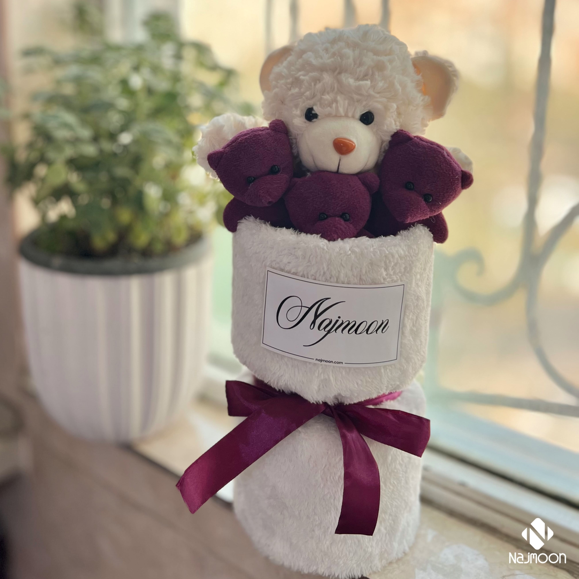 بوکت عروسک خرس راس با رنگبندی و دستگل خرس کادویی